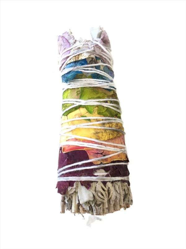 White Sage with Rose seven Chakra smudge sticks. Chakra is to balance all major points in the body . Smudging, the ritual burning of sage, is done to clear a space or person of negative energies. Glowing and High-quality product. Every stick is set 4”lengthy and 1" inch height. High-quality use for smudging ritual, purification and non-secular blessing. Excessive fine product with hand-tied cotton string. Well for home fragrance. Burn white sage to clear strength and restore balance, for safety and spiritual purification.