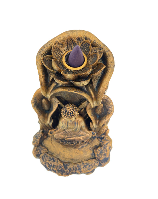 Contemplating Buddha Smoke Backflow Cone Incense Holder with 10 Incense Cones Decorative Showpiece. This piece of craftsmanship has master Buddha sitting and reflecting next to the cascade. Essentially place an incense cone at the highest point of the flood, and with the cone's unique properties, the smoke begins to stream backward course, that is through and through, and like this makes a delightful smoky cascade. With scented smoke pouring in waves adjacent to the Buddha, this makes the ideal housewarming present for any home!