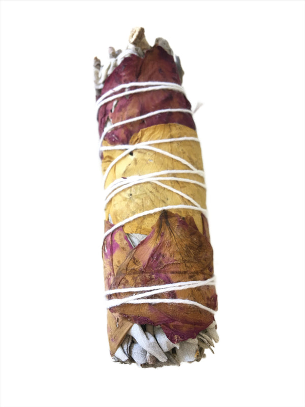 White Sage with fresh rose petal smudge sticks. Smudging, the ritual burning of sage, is done to clear a space or person of negative energies. Glowing and High-quality product. Every stick is set 4”lengthy and 1" inch height. High-quality use for smudging ritual, purification and non-secular blessing. Excessive fine product with hand-tied cotton string. Well for home fragrance. Burn white sage to clear strength and restore balance, for safety and spiritual purification.