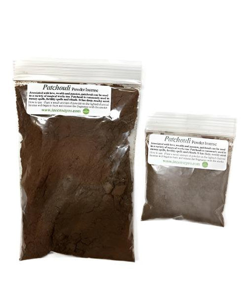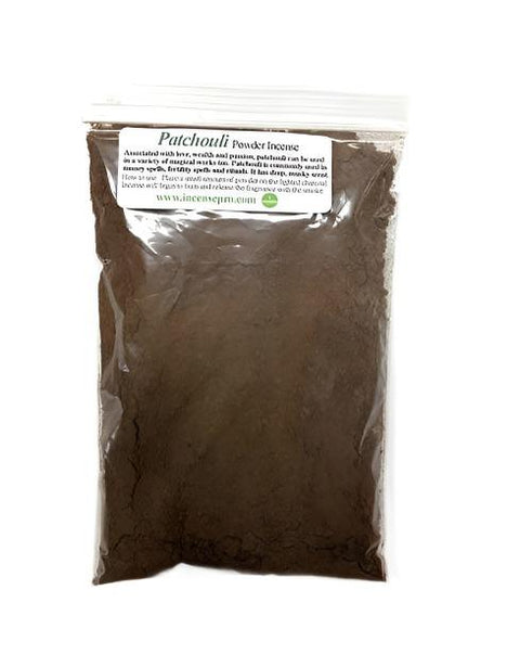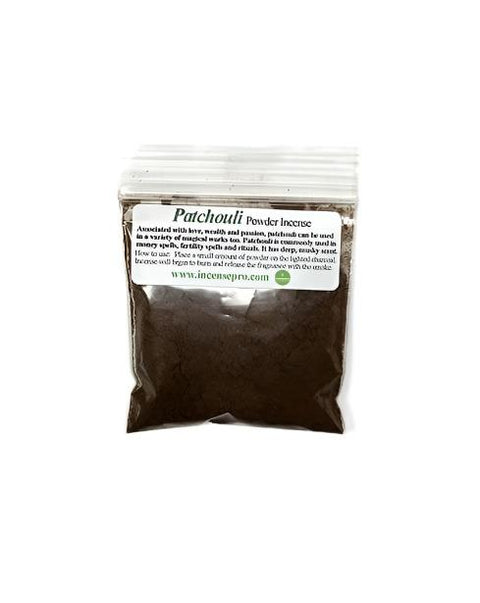 - Patchouli powder incense is a self-lighting fixture, easy to use, the natural burning medium which has been infused with the effective scent of patchouli important oils. Burn a small part of this gently scented powdered incense for spells of affection and appeal and earth magic.
